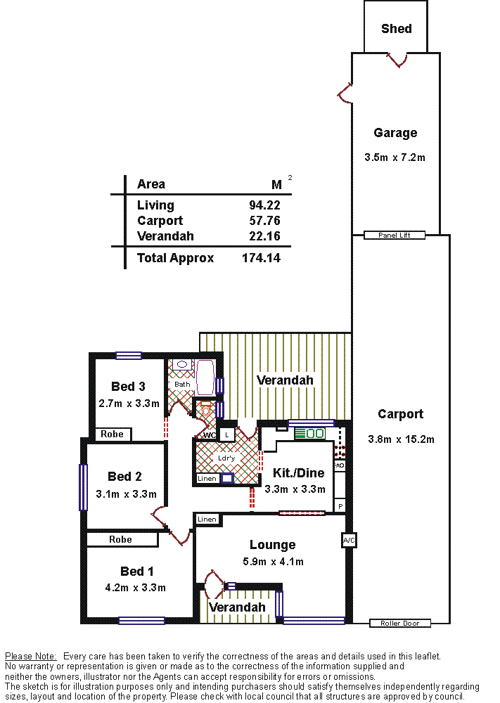 The home has 3 bedrooms (main with b.i.r), new installed kitchen, lounge with air cond (wall unit) & a sep bathroom & sep laundry. Neutral paint scheme throughout.