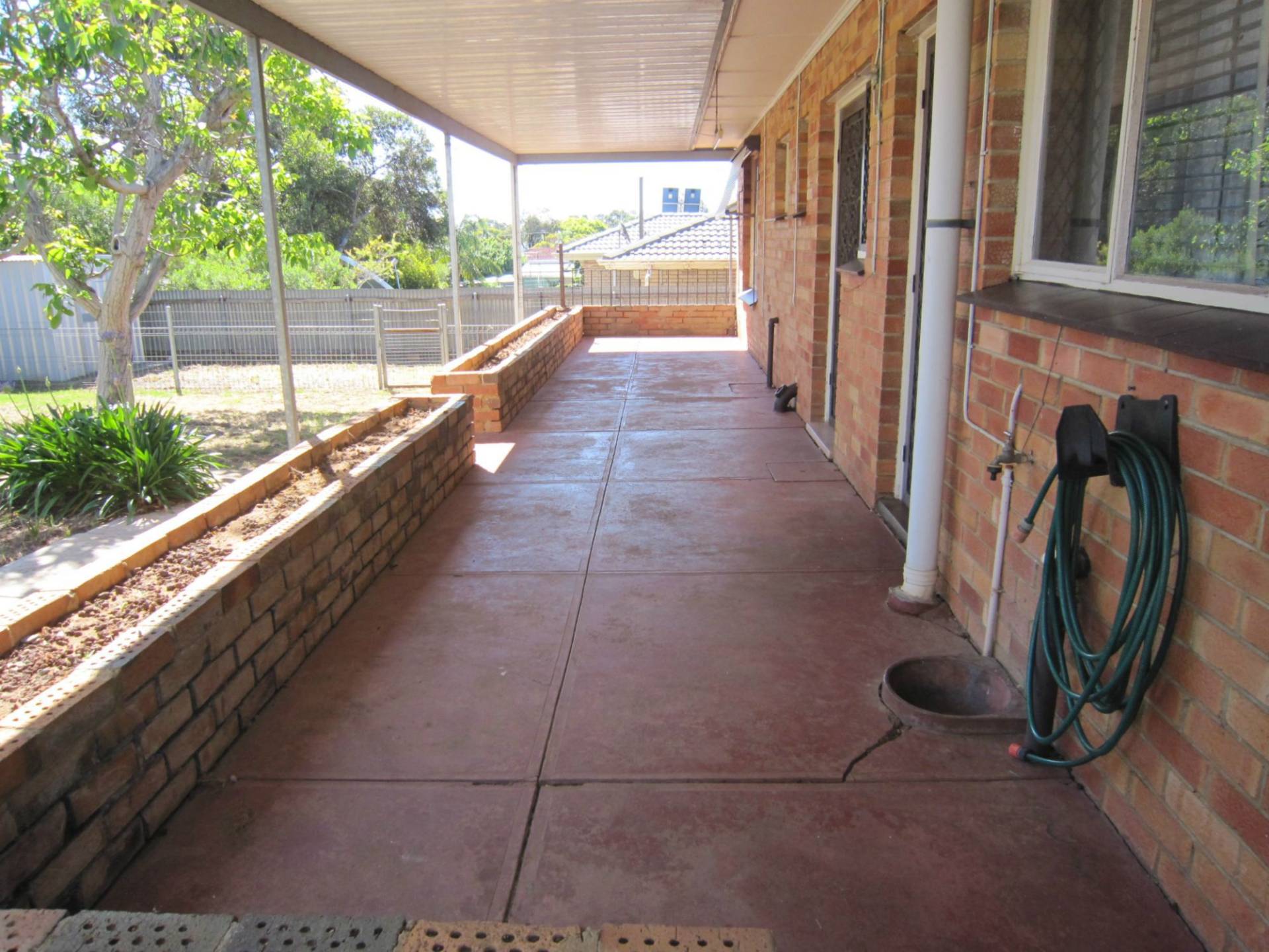 3 Bedrooms, Floor Boards, Kit/Meals, Lounge with gas heater, Air Con (Wall Unit), Electric Stove, Main Bathroom, Alarm, Seperate Laundry & w.c, Carport with gates, tool shed, Rear Verandah.